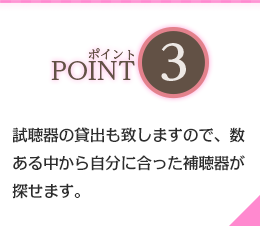 専門的な聴力測定をさせていただいた後、お客様に合った補聴器をお選びいたします。
